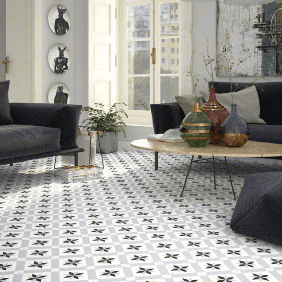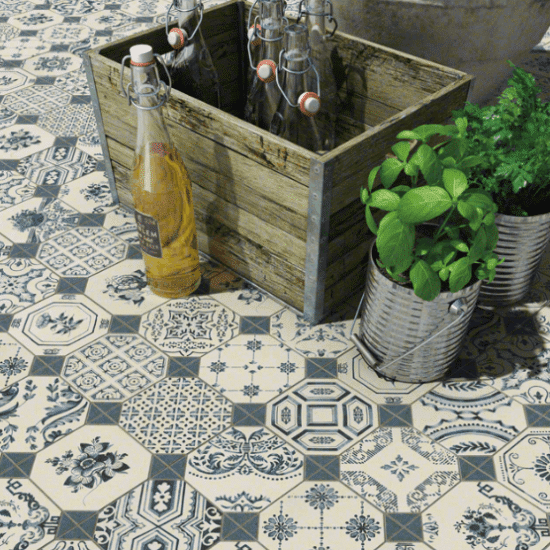 Tiene infinidad de presentaciones, imitando la madera, el cemento, la piedra, o a los clásicos suelos hidráulicos entre otras variables.