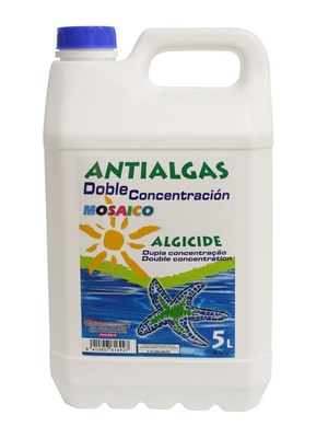 Alguicida enérgico especialmente diseñado para prevenir y eliminar incrustaciones de algas en paredes y suelos de piscinas.