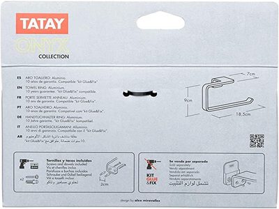 Aro toallero de la colección Onyx de 18,5 cm de largo.