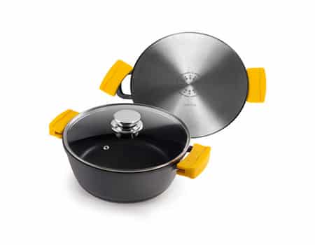 CACEROLA MODELO EVOLUTION DE 24CM, DISEÑADA EN ALUMINIO FUNDIDO, Y CON UN GROSOR DE 7MM (LO QUE LA HACE INDEFORMABLE). ESTÁ RECUBIERTA CON 3 CAPAS DE ANTIADHERENTE DE ALTA CALIDAD.