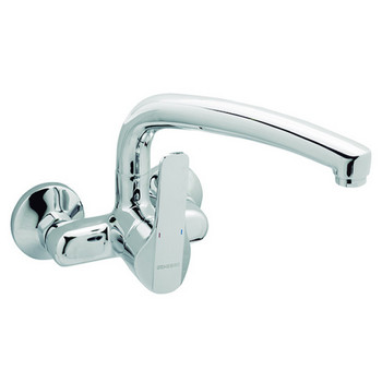 Monomando de fregadero mural cuyo acabado es en cromo de alta calidad, para instalar en pared sobre la