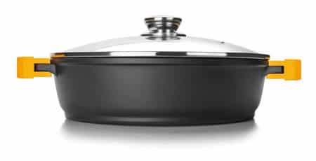GUISERA MODELO EVOLUTION DE 24CM, DISEÑADA EN ALUMINIO FUNDIDO, Y CON UN GROSOR DE 7MM (LO QUE LA HACE INDEFORMABLE). ESTÁ RECUBIERTA CON 3 CAPAS DE ANTIADHERENTE DE ALTA CALIDAD.