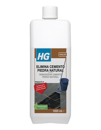 HG Elimina cemento piedra natural no contiene ácidos, eliminando así de forma segura restos de cemento o de cal de mármol y otros tipos de piedra natural calcárea como travertino, piedra azul, piedra dura, etc., pero también es seguro para baldosas sintéticas y de hormigón con pequeñas piezas de piedra natural, como granito y compuestos de mármol.