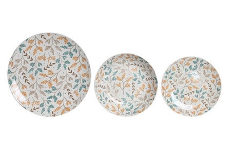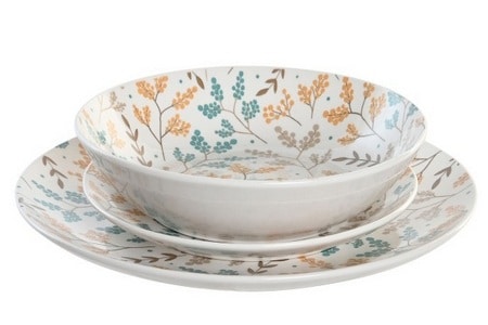 SET VAJILLA DE PORCELANA DE 18 PIEZAS (6 PLATOS HONDOS, 6 PLATOS LLANOS Y 6 DE POSTRE)